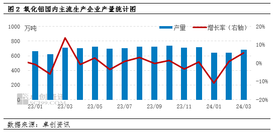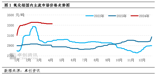 【导语】2024年1季度氧化铝价格上涨至历年新高,卓创资讯价格监测来看,1季度均价同比上涨13.82%,上游原料铝土矿供应偏紧及下游电解铝厂节前备货增多给氧化铝价格上涨带来支撑,3月随着供应增量及下游需求释放不足,氧化铝价格小幅下跌。2季度来看,供应增量有限,下游需求或表现稳定,氧化铝基本面有望处于产销平衡局面,加上季节性需求变动规律影响,氧化铝价格或稳中小幅下行。