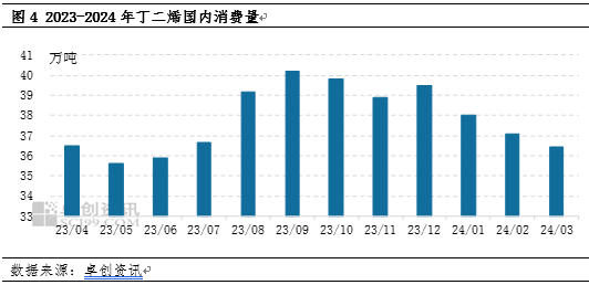 供应端来看,二季度国内丁二烯装置检修数量减少,4月中盛虹及辽阳丁二烯装置重启,季度内还有浙石化2#、中科炼化、卫星石化、上海石化及燕山石化各一套、华锦、独山子石化丁二烯装置检修,整体来看装置检修损失量较一季度有所减少。且三季度来看,装置检修力度继续下滑,季度内检修预期对市场提振力度或明显逊色于一季度。新装置方面,二季度内山东金诚石化10万吨丁二烯装置或存在产出预期,对市场现货流通量将存在一定补充。整体来看,国内供应端对价格支撑较一季度或减弱。