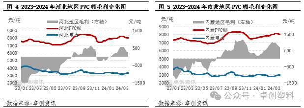 支撑一季度PVC糊行业开工负荷率维持偏高,除了企业库存无压力,预售较好外,单产品盈利维持向好,也是支撑行业开工维持偏高的原因。一季度来看,北方外购电石的PVC糊企业单产品平均毛利480元/吨,较去年四季度增135元/吨,较去年同期增1437元/吨。1-2月电石供应充裕,且受春节假期影响运输转慢,价格重心下移,而PVC糊价格走势上行,PVC糊单产品盈利偏高。3月份电石供应偏紧,价格走势上行,虽然PVC糊价格松动,但跌幅有限,整体PVC糊盈利仍较乐观。