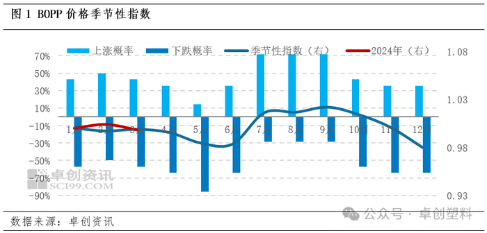 2024年一季度BOPP价格波动基本符合季节性规律,2月表现略好于季节性。二季度来看,市场处于传统淡季,历史15年数据反馈跌多涨少。季节性指标仅反馈历史价格变动规律,即期行情仍需关注当下BOPP市场供需及成本情况。