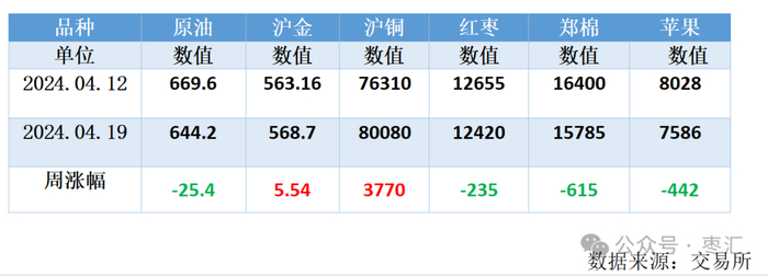 国内主要商品,原油下跌,沪金上涨,铜上涨,红枣下跌,棉花下跌,苹果下跌,商品涨跌互现。