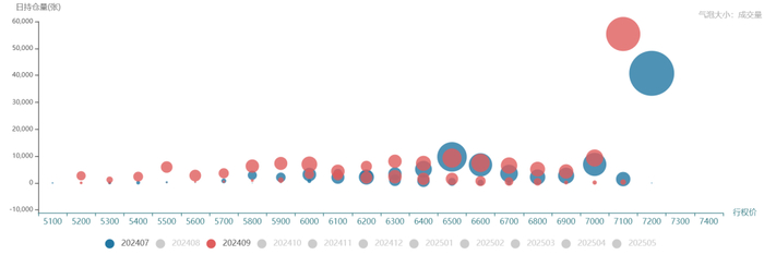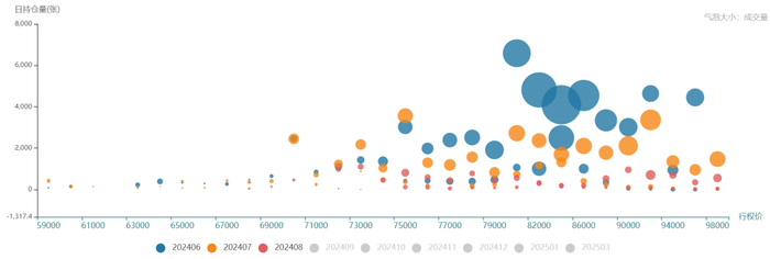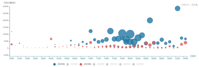 说明:纵轴代表持仓量,横轴代表行权价,气泡大小代表成交量