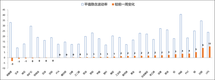 隐含波动率上升前三品种为LPG、白银和铜 |