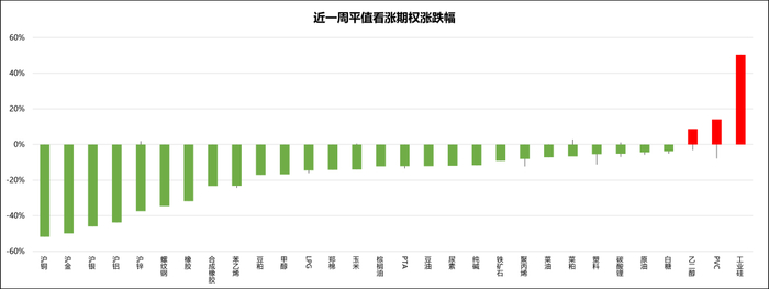 说明:最近一周相比前一周,期权主力合约平值行权价隐含波动率的日均值变化