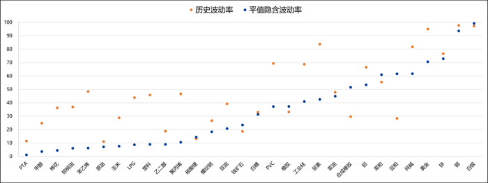 白银和铜的两种波动率偏高 |