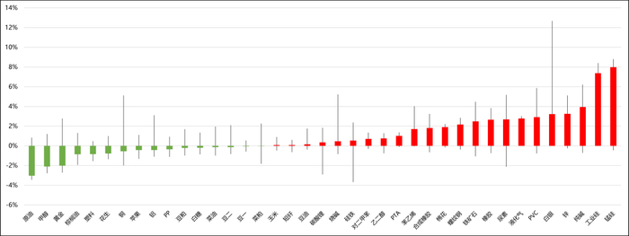 涨幅前三品种为锰硅、工业硅和纯碱 |