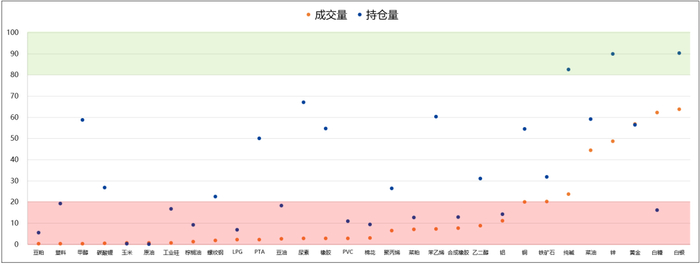 说明:纵轴代表持仓量,气泡大小代表成交量