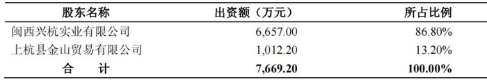 2000年6月,上杭县财政局将所持86.80%股权转给国有资产经营公司“闽西兴杭实业有限公司”。7月,4家外部股东联合成立“上杭县金山贸易有限公司”作为融资载体,并将所持13.2%股权转至金山贸易。