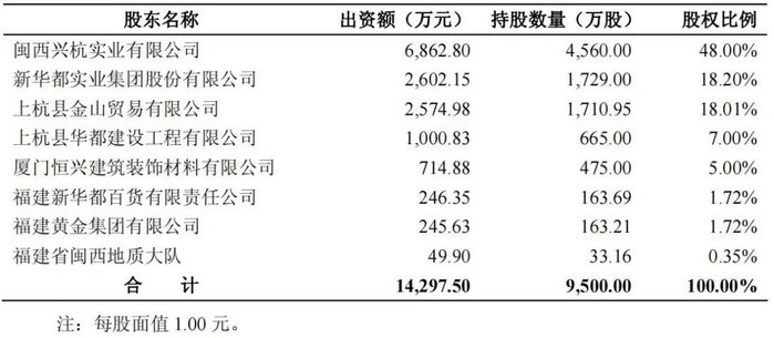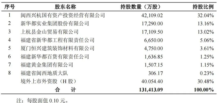 8月,紫金矿业股份制改制,闽西兴杭实业作为主发起人,联合新华都实业、金山贸易、新华都工程、厦门恒兴、新华都百货、福建黄金集团和闽西地质大队7家发起人,设立“福建紫金矿业股份有限公司”。