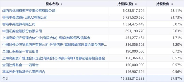 如果仅仅依靠F10及公司披露股权结构,只能看到:闽西兴杭国有资产投资经营管理有限公司,持股23.19%。