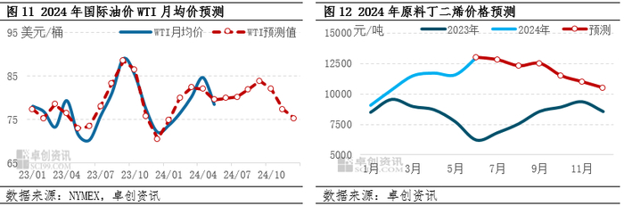 预计原油及丁二烯均表现为Q3高位、Q4回落,伴随成本回撤丁腈价格走势亦或前高后低