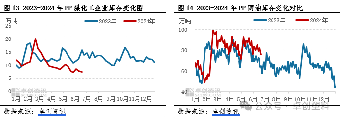(备注:2024年两油库存多数时间高于去年同期,或源于2023年-2024年6月两油新增PP产能190万吨,从节奏上看,今年去库存相对顺畅)