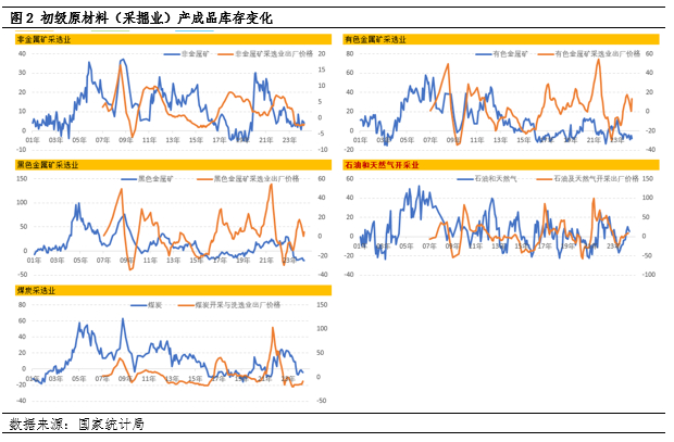 从具体行业看,石油和天然气开采业进入到库存和价格共振向上的阶段,新一轮补库存周期已经形成;尽管有色金属价格总体上涨趋势较强但从有色金属矿同比角度看存量依旧呈下滑态势,也在一定程度上反映下游有色金属冶炼与压延加工业需求相对较为旺盛,与有色金属类似的行业还有黑色金属采矿业。