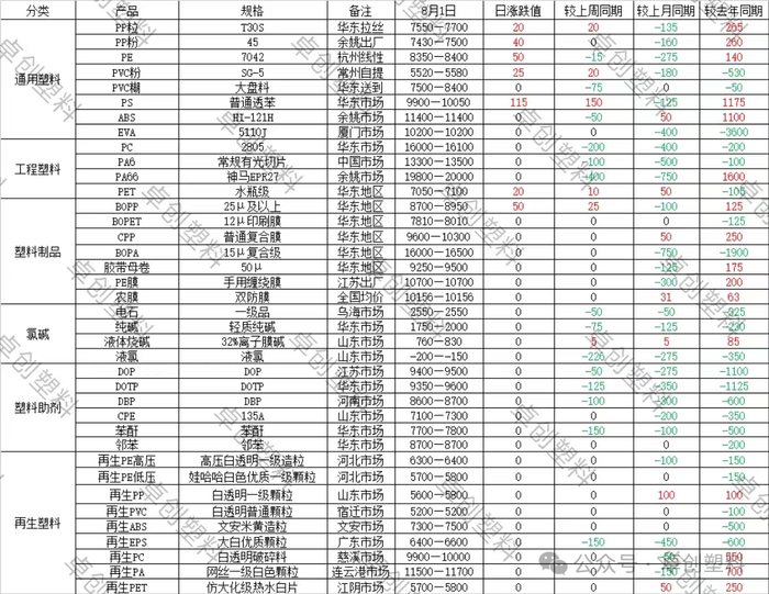 备注:以上表中所取价格为各产品代表市场或是代表区域价格,更多市场价格及详情内容请关注卓创资讯各产品网站或手机客户端。