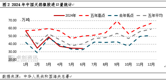 2024年上半年天然橡胶进口量同比下滑24.42%
