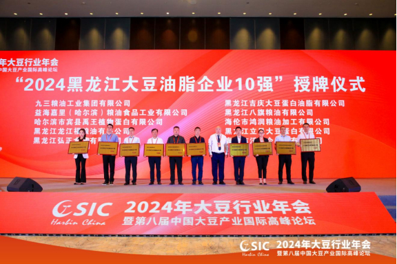“2024黑龙江大豆油脂企业10强”、“2024黑龙江大豆精深加工企业10强”授牌仪式