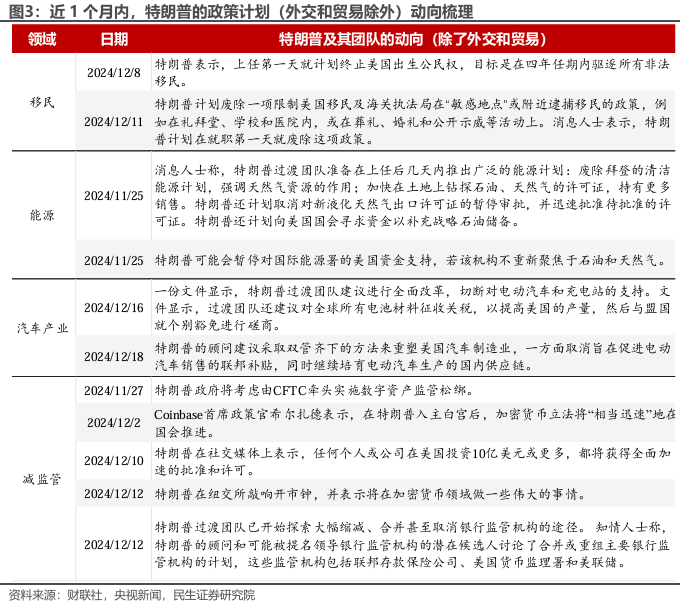 中国方面,特朗普提出对华加征10%关税,并在12月22日对TikTok放宽态度。相比之下,特朗普对中国的“针对性”并不突出。