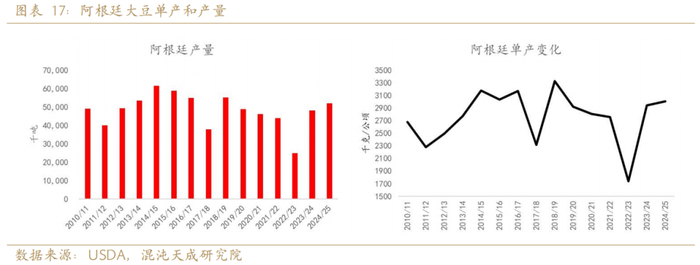 2017年和2022年的拉尼娜下,阿根廷发生干旱事件,大豆产量同比减产20-30%。