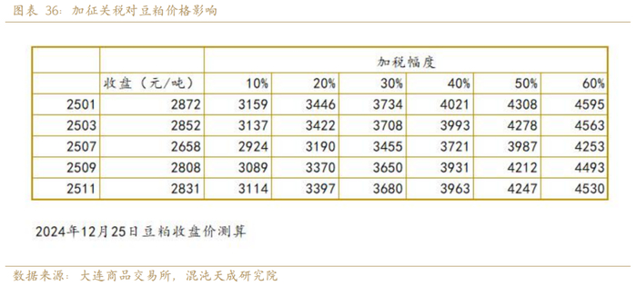 从季节性来看,如果加征大豆进口关税,其影响将从2511合约逐渐开始,影响最大的是2601合约。中国进口美国大豆从11月开始增加,进口量最大的是12-2月。如果加征关税,将提高2025年11月2026年2月大豆的进口成本。
