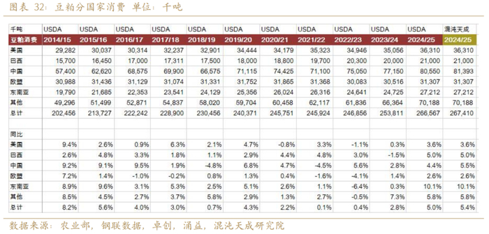 中国是最大的豆粕需求国,在生猪产量增加下预计豆粕需求同比增加5.5%。USDA预测东南亚等市场豆粕需求增加10%,是全球需求的增量的主要来源。