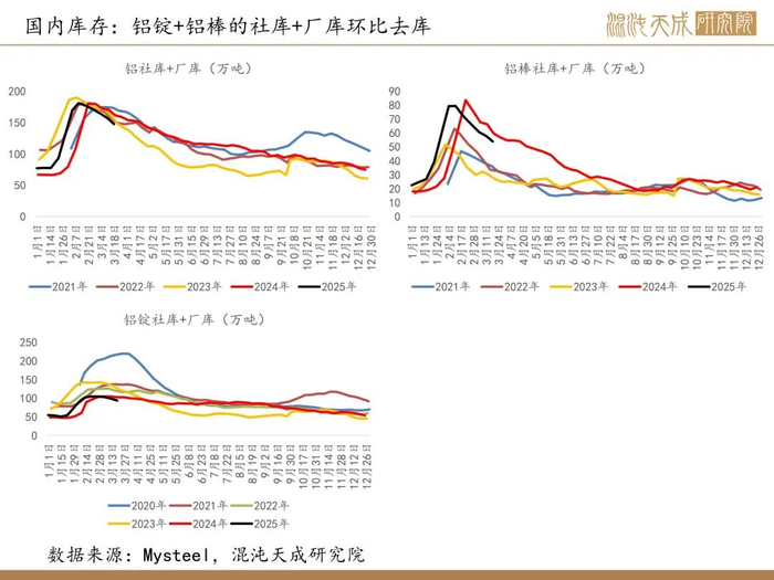 2.【中国1-2月未锻轧铝及铝材进口量同比减少15.8%】海关总署3月18日公布的数据显示,中国2025年1月未锻轧铝及铝材进口量为29万吨,同比减少24.3%;2025年2月未锻轧铝及铝材进口量为32万吨,同比减少6.3%;1-2月未锻轧铝及铝材进口量为61万吨,同比减少15.8%。(海关总署)