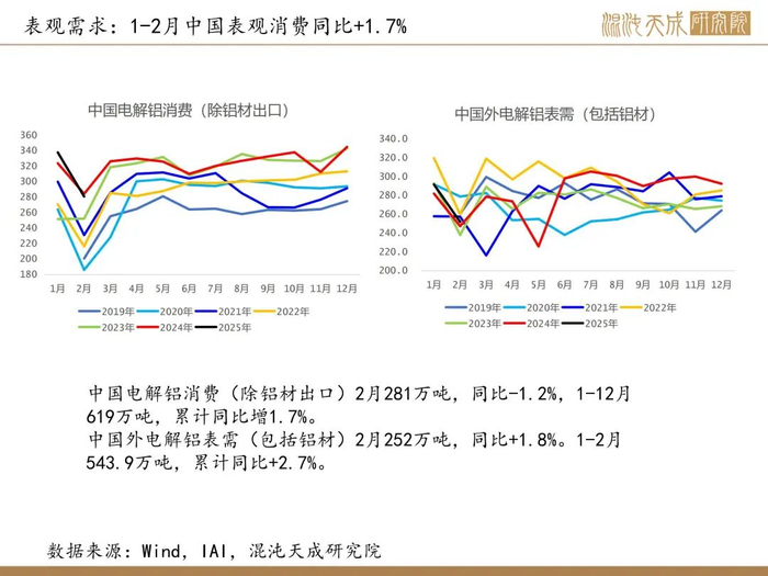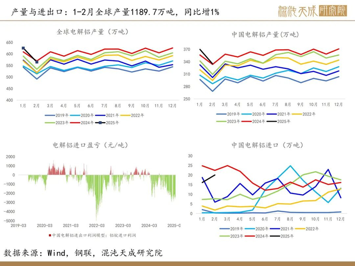 6.【国际铝业协会(IAI):2025年2月份全球原铝产量为564.5万吨】国际铝业协会(IAI):2025年2月份全球原铝产量为564.5万吨,去年同期为569.4万吨,前一个月修正值为623.5万吨。预计2月中国原铝产量为337万吨,前一个月修正值为372.3万吨。(金十数据)