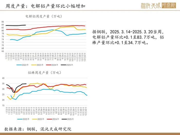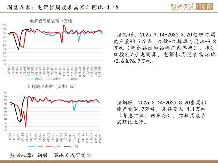 需求方面,周度表需环比上行。美国对铝征收25%关税落地,美联储点阵图显示2025年仍预计降息两次,并将放缓资产负债表缩减步伐。美制造业pmi连续两月站上枯荣线,欧洲财政扩张,经济预期改善,中国2月pmi重回扩张区间,工业需求仍有支撑,国内有降准降息预期,需求仍可期待。