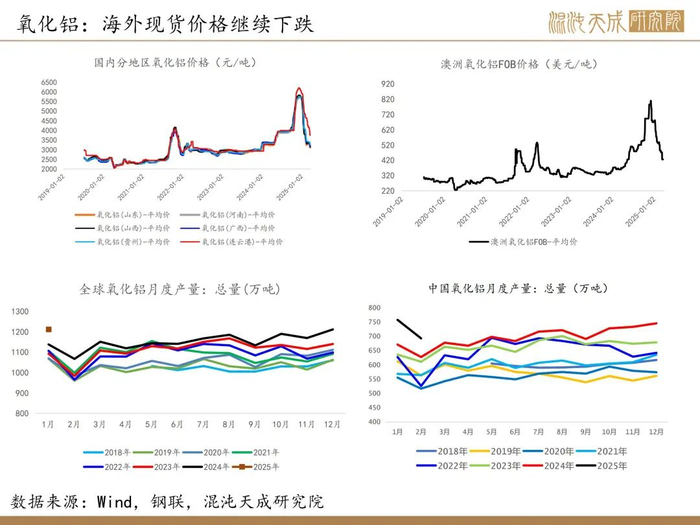 3.【中国1-2月氧化铝出口量同比增加45.9%】海关总署3月18日公布的数据显示,中国2025年1月氧化铝出口量为20万吨,同比增加42.9%;2025年2月氧化铝出口量为21万吨,同比增加48.9%;1-2月氧化铝出口量为40万吨,同比增加45.9%。(海关总署)