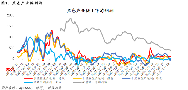 从黑色产业链利润角度来看,黑链整体仍处于下游向上游要利润状态。截止5月16日当周,吨精煤利润延续下降;吨焦利润盈利略有扩大;以螺纹热卷冷轧为代表的主流钢材品种吨钢即期利润周度环比有所回升(钢厂利润整体尚可),钢材现货估值整体维持中性。