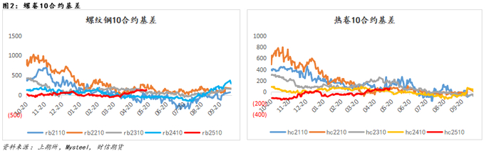 从基差角度来看,螺卷10合约基差持稳。从基差季节性角度来看,目前螺卷主力10合约基差整体处于中性水平。
