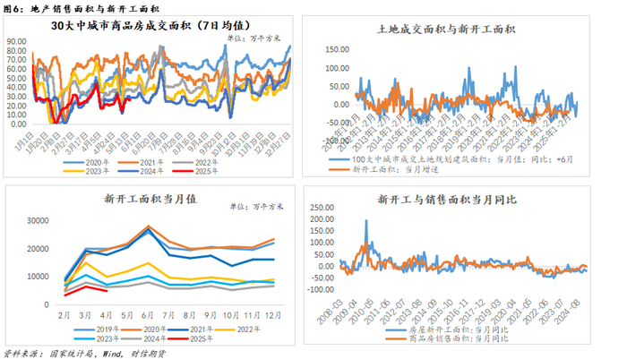 从需求驱动来看,地产销售尚未明显好转,土地成交对新开工指引仍弱,整体来看,地产新开工或维持低位运行。据国家统计局数据,4月地产新开工创近7年同期最低水平,4月销售面积同比尚未转正,房企资金或仍偏紧张,地产用钢需求或维持偏弱态势。