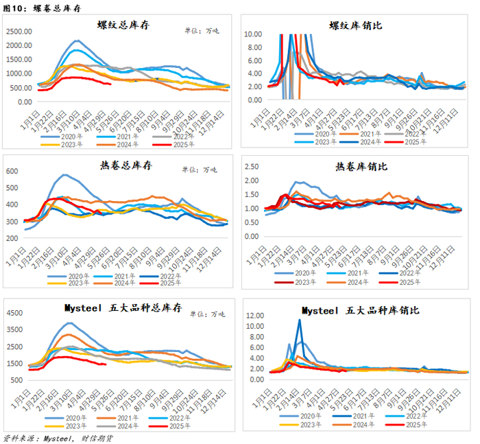 从库存角度来看(以Mysteel五大品种为对象),钢材总库存延续下降,钢材库存整体处于偏低水平,供需矛盾暂不大,仍需累积。
