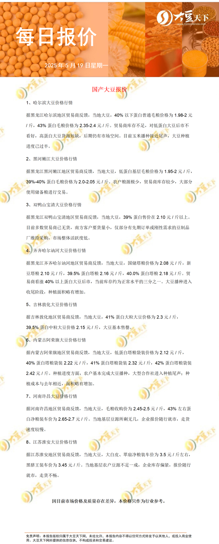 独家资讯|大豆每日动态