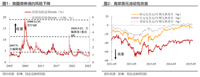 在市场面前,意外频出才是不出意外的,从原有框架出发我们似乎没有观测到美国的流动性危机,但这个词又反复被市场和媒体提及,说明这次的流动性收紧和往常有所不同。从3月11日的报告《二季度美国的流动性挑战》开始,笔者就持续监控着美国的流动性溢价和信用溢价等传统流动性指标的走势。我们同市场一样试图通过观察这些指标的变化来提示流动性风险。在4月关税第1周时,这些传统指标确实存在明显走高的趋势,但之后又快速下降,目前已经大幅回吐了之前的涨幅(图1-2)。那么是不是我们就可以宣布流动性的冲击已经缓解了?