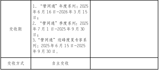 1.“管网通”年度系列服务周期:2025年6月16日—2026年3月15日。