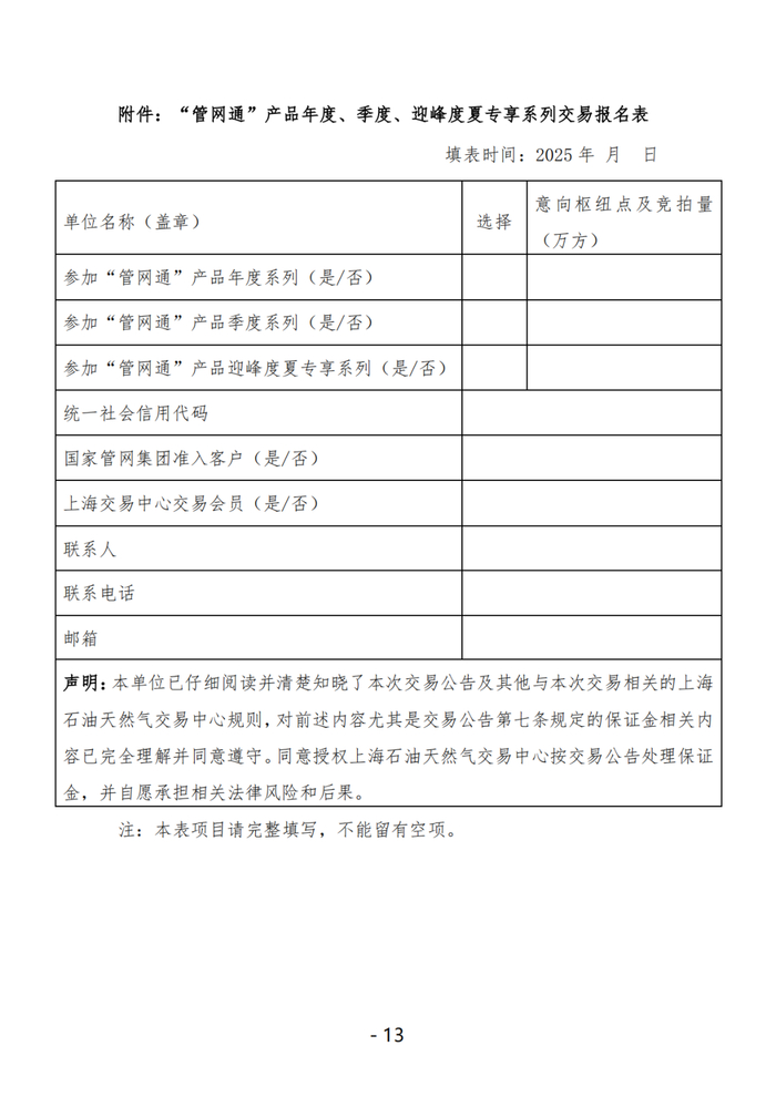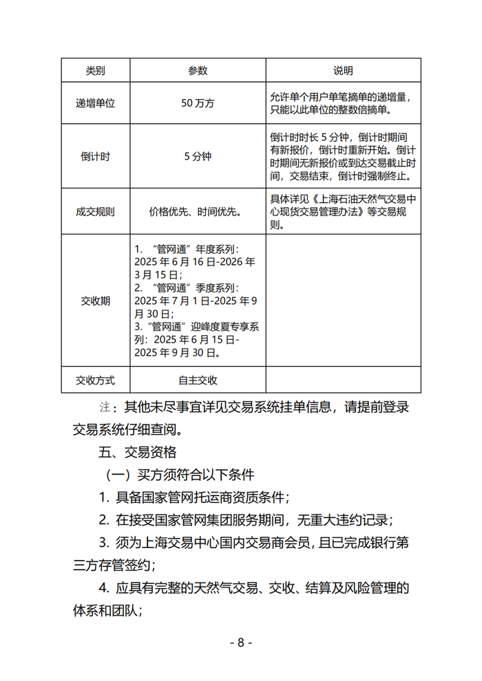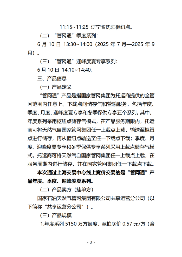 SHPGX导读:国家石油天然气管网集团有限公司定于2025年6月10日联合上海石油天然气交易中心开展“管网通”产品年度、季度、迎峰度夏专享系列竞价交易。现将有关事项公告如下。