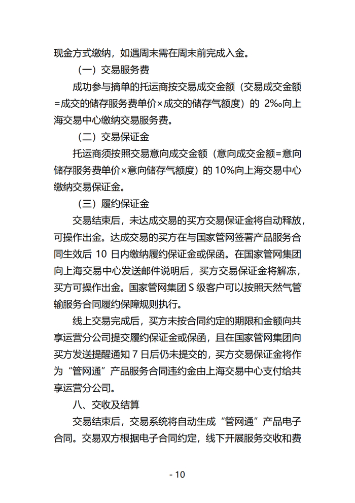 托运商须按照交易意向成交金额(意向成交金额=意向储存服务费单价×意向储存气额度)的10%向上海交易中心缴纳交易保证金。