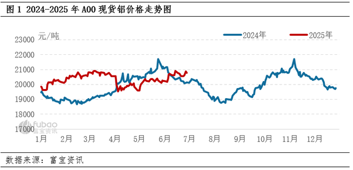 2025年良性的基本面格局使得上半年电解铝价格总体维持高区间状态。截至6月30日,2025年上半年A00现货铝均价为20312元/吨,较2024年同期上涨517元/吨,涨幅2.61%。