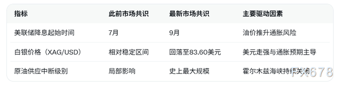 2月底美以打击已造成原油供应史上最大中断,油价飙升直接抬升能源与运输成本,核心通胀路径顽固化。市场因此重新定价美联储需更长时间观察通胀回落数据,降息窗口顺延至9月。这一调整推升美债收益率与美元指数,美元计价商品包括白银同步承压,形成清晰的政策-价格传导链条。