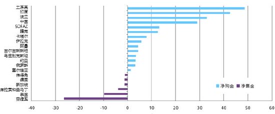 各经济体央行年初至今的净购/售金量(单位:吨)*