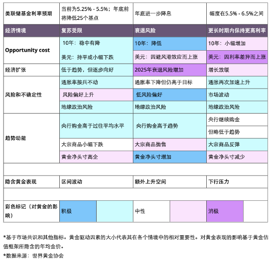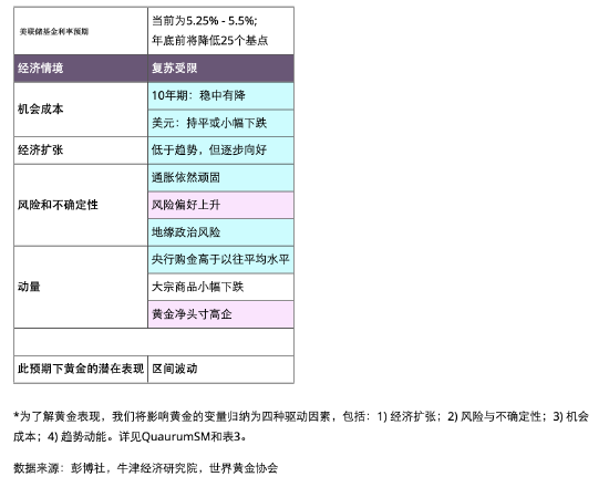 表3:四种主要因素相互作用,决定了黄金在特定经济情境下的表现