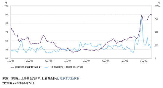 中国市场黄金ETF持仓量和期货持仓量*