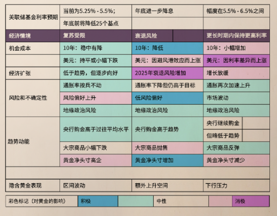 [4]基于市场共识和其他指标。黄金驱动因素的大小代表其在各个情境中的相对重要性。对黄金表现的影响基于黄金估值框架所隐含的年均金价。