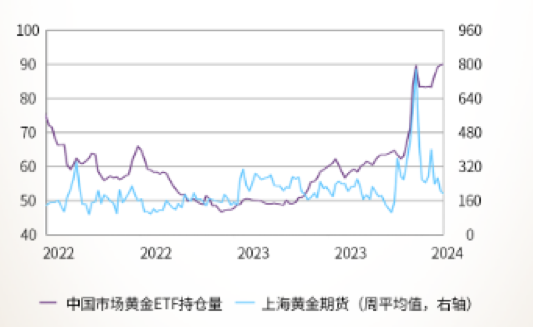 中国市场黄金ETF持仓量和期货持仓量3