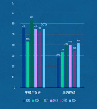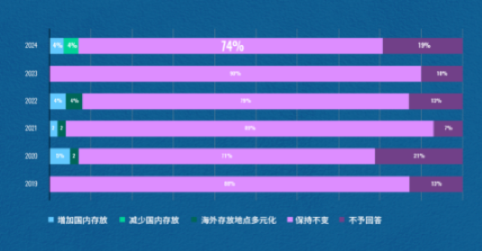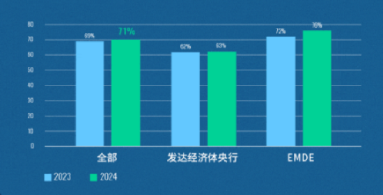 71% 的受访央行表示,2024 年的总储备水平高于五年前与去年的 69% 相比变化不大