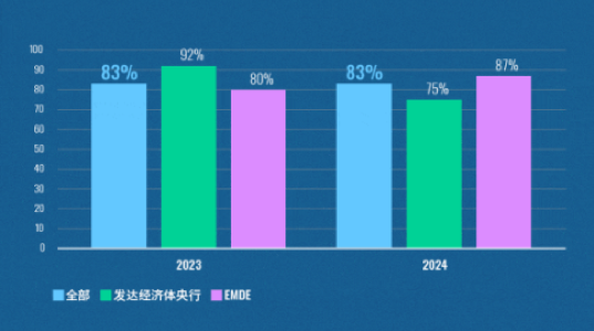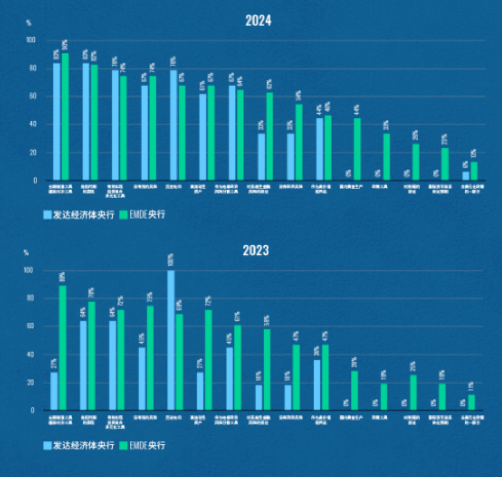 今年的调查中,新兴市场和发展中经济体央行和发达经济体受访央行对黄金的看法显著趋