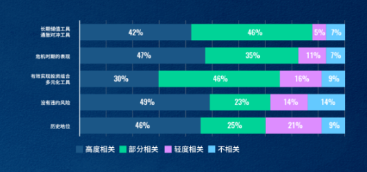 今年,央行持有黄金的首要原因是“长期价值储存/通胀对冲“(88%) ,其次是“危机时期的表现”(82%)、”有效分散投资组合”(75%)和无违约风险”(72%) 。