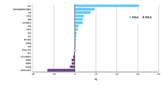 各经济体央行年初至今净购金/售金量(单位:吨)2
