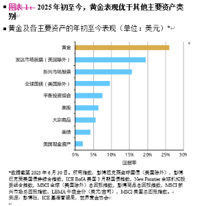 2025年上半年收官,黄金成为表现最好的主要资产类别之一,期间涨幅近26%。在2024年40次刷新纪录高位后,2025年上半年,黄金进一步录得26次历史新高(ATH)。