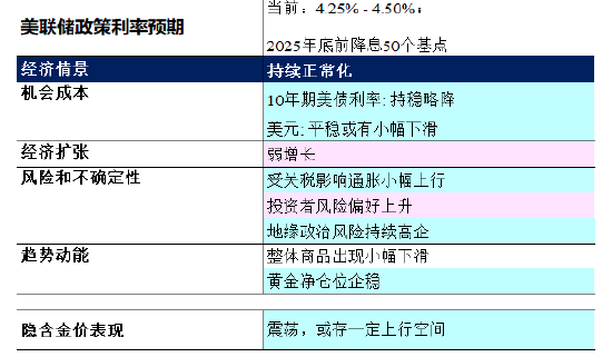 2025年下半年的假定宏观经济情境及隐含黄金表现